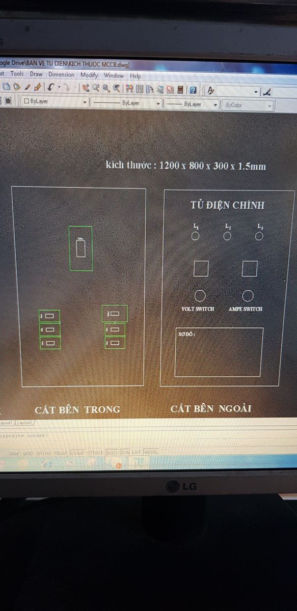 Bước đầu tiên sẽ chọn kích thước tủ điện sao cho phù hợp với nhu cầu và mục đích sử dụng. Tủ điện này nhằm mục đích đóng ngắt mạch do đó sẽ dùng tủ 2 lớp để có lớp ngăn cách bảo vệ người sử dụng khi xảy ra sự cố. Tủ 2 lớp thì giá cả sẽ cao hơn tủ 1 lớp nhưng vì tính an toàn và thẩm mỹ chúng ta sẽ chọn loại tủ này. Việc chọn tủ này các bạn cũng phải thêm 1 công đoạn nữa là vẽ bản vẽ sắp xếp MCCB và vị trí cắt lỗ để gắn các thiết bị . Hiện nay các cơ sở sản xuất tủ điện chỉ cần đưa file thiết kế sắp xếp khí cụ điện, họ sẽ cắt cnc sau đó tiến hành phun sơn tĩnh điện, nhận tủ về các bạn chỉ ráp thiết bị vào là xong, rất nhanh và chuyên nghiệp.