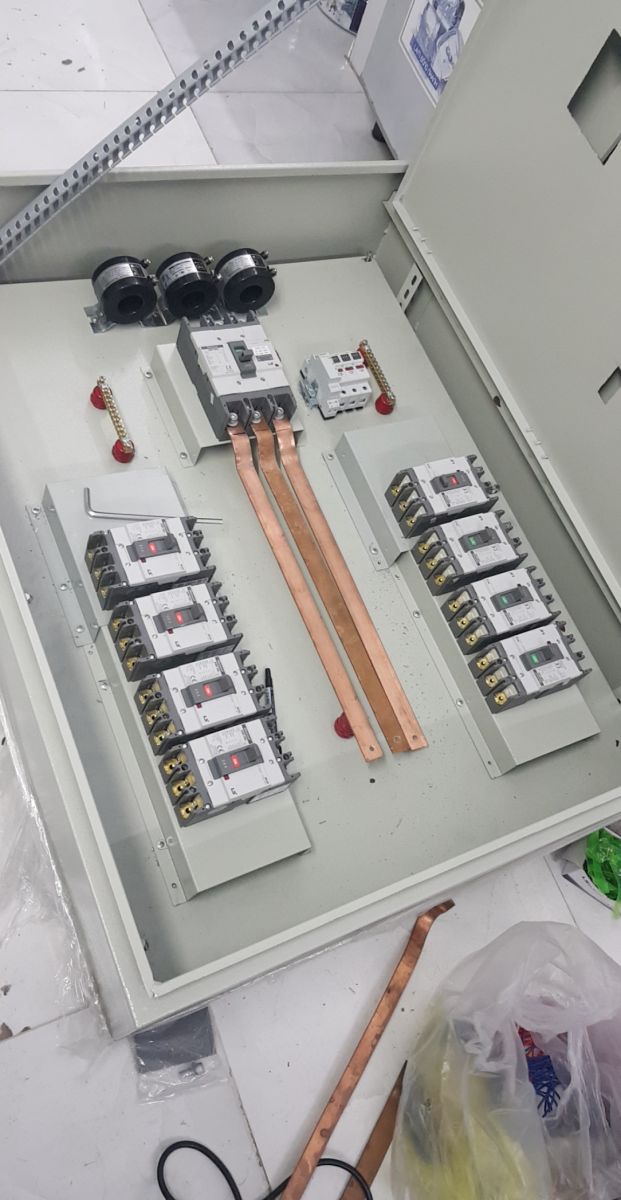 Các thanh cái chia ra 2 bên là loại 200A, 100A và 50A. Khi mua thanh cái không cần biết là dài hay ngắn , chịu dòng điện lớn hay nhỏ, khi tính tiền chủ tiệm sẽ đem cân lên và tính, giá 1 kg thanh cái là 280 ngàn nhé các bạn. Thi công xong 2 cái tủ động lực này mình tốn hết 2tr tiền thanh cái đấy, đây cũng là lưu ý khi tính toán và báo giá cho chính xác.