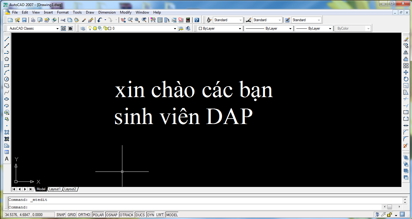các bạn chọn vào " autocad 2007. exe " để chạy chương trình, và đây là kết quả: