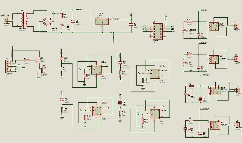 Sơ đồ nguyên lý mạch đk từ xa bằng remote 4 ngõ ra :