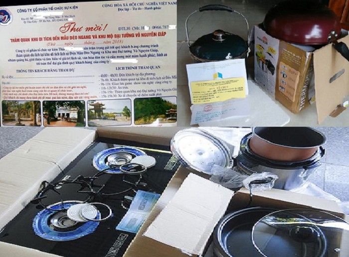 sau tua du lịch miễn phí các cụ, các cựu chiến binh mang về cơ man nào là xoong nồi, bếp ga... chất lượng rởm mà giá cả trên trời. Rõ là tua du lịch" không đồng" nhưng với giá tiền như du lịch Châu Âu.