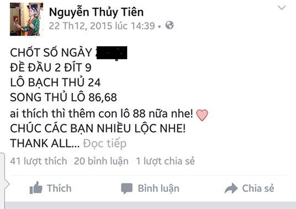 Tuy nhiên, cũng không ít lần “Tiên cô” đoán sai và chỉ có một lời giải thích ngắn gọn: “Rất xin lỗi mọi người” hay “Sao đen thế này, xin lỗi cả nhà!”… Thậm chí, có khoảng thời gian dài, Tiên liên tục “phán” sai. Thấy nhiều người bình luận với lời lẽ nặng nề, “cô” liền “phủi tay” rằng “facebook bị hack, người cho số không phải là mình”.
